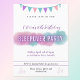 Stylish and fun birthday invitation for a girl or teen's slumber party. A modern glow effect and pretty pasel pink, purple and blue/teal colours are used in the lettering, and the design is finished with a purple star. Customisable to personalise with all your party details.