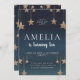 This slumber party birthday invitation is the perfect invite for a teen girl's sleepover party. Great for a pajama party, virtual sleepover, halloween sleepover or camping under the stars. Featuring a navy blue night sky background with gold stars, this invite is editable to suit your slumber party details.