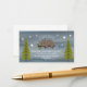 Diaper raffle cards featuring an illustration on front of a bear resting on a tree branch between two evergreen trees with a watercolor inspired background and stars.