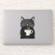 Sleepy Black Cat with a Cup of Coffee Boho Sticker