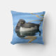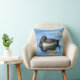 Do you relate to this little duck? This nature throw pillow features a photo of a black and white duck with his beak tucked into his feathers and his eye open observing the world. Doesn't look like he is ready to face the day. The duck's reflection can be seen in the calm blue water. The back of this pillow features a light blue solid colour which can be customised if you desire.