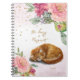Sleepy Cat Illustration Flower Girl Daily Diary Notebook