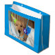 Ever been tired after a long day celebrating your birthday? This gift bag features a photograph of a cute golden retriever dog tucked into bed, while wearing pyjamas and a party hat and holding his teddy bear. Time for sleep!