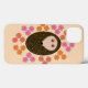 This awesome iPad mini case features a cute cartoon of a little brown spiky hedgehog curled up in a ball looking sleepy. The Hedgehog is surrounded by pretty flowers. The hedgehog is brown with a cream face and the flowers are red, orange and pink.