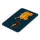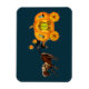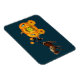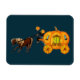 This magnet has my "Sleepy Hollow Headless Horseman Pumpkin Carriage", my Headless Horseman Riding A Pumpkin Carriage, a very Romantic era / pre Victorian era, post Colonial, elements and decoration, with a very beautifully shaped pumpkin carriage, with pumpkin wheels, gilted gold carved windows and portal door, driven by the Headless Horseman, carrying a pumpkin happily in his right hand, with a dark brown version of his horse, Daredevil, only this time, both are humble, minding their own business, not wanting to cause harm, on this lovely, harvest moonlight, Halloween night! Smokey navy aqua blue background colour.