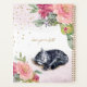 A sleepy cat surrounded by delicate flowers. The purr-fect (perfect) gift! Simulated gold glitter.