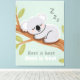 A sweet, snoozing koala cuddles a tree branch with gentle Zzz above, framed by soft sage green and hand‑lettered mantra “Rest is best” for soothing nursery and kids’ room decor. Cosy pastel palette and textured illustration create a calm bedtime vibe while focused keywords align with Zazzle metadata guidelines for discoverability.