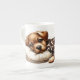 This charming Sleeping Puppy in Pyjamas Bone China Mug will add a touch of whimsy and delight to your daily tea or coffee routine. The adorable graphic of a sleeping puppy curled up in cosy pyjamas is sure to make you smile every time you take a sip. Personalise it with your name or the name of your furry baby. Crafted from fine porcelain with subtle design details like a fluted rim and curved handle, it complements both casual and formal table settings. Give one as a gift to brighten a friend's morning ritual.