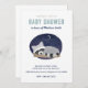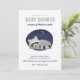 This adorable Baby Shower invitation features a sleepy racoon and elegant text.