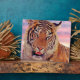Sleepy Tiger with sunset (white black gold orange and purple).