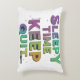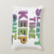 Arched with Flair: The words curve playfully across the pillow, with each letter a different colour, creating a dynamic and eye-catching design.
