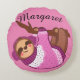 Sleepy Winter Sloth in Pink Round Cushion