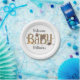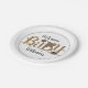 Baby shower plates featuring an illustration of a fox, owl, bear, and racoon resting on text "BABY." Personalise the name.