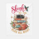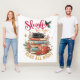 A festive and cheerful Christmas design showcases an adorable black kitten nestled on a stack of books. Beside the books are vibrant poinsettias, pine branches, holly berries, and a steaming cup of cocoa. Golden stars frame the scene, adding a magical touch. The colourful text reads, "'Sleigh all day, read all night." This delightful design is featured on a variety of products, making perfect gifts for book lovers.