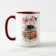 A festive and cheerful Christmas design showcases an adorable black kitten nestled on a stack of books. Beside the books are vibrant poinsettias, pine branches, holly berries, and a steaming cup of cocoa. Golden stars frame the scene, adding a magical touch. The colourful text reads, "'Sleigh all day, read all night." This delightful design is featured on a variety of products, making perfect gifts for book lovers.