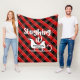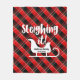 Sleighing It Christmas Fleece Blanket. Christmas spin on slaying it, personalised Christmas blanket. Scripted font reads "Sleighing it" with illustration of a vintage winter sled against black, white and red and green holiday plaid pattern. Personalise with your family name for the perfect holiday keepsake. Created by © Lesruba Designs.