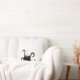 This throw pillow has both the symbol and a drawing of the entity known as 'Slenderman' on it, both placed in a fashionable way.