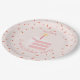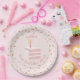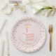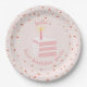 A cute paper plate for a first birthday party featuring a slice of pink cake and single candle design. Easily personalise this design with your party details! Check out our matching collection for coordinating items.