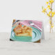 Slice of fresh baked apple pie on plate card