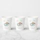 Perfect for engagement parties, rehearsal dinners, or wedding showers, these festive paper cups feature a watercolor slice of layer cake in rainbow hues, topped with sparklers and aqua confetti. Personalise with your names and wedding date or event date beneath.