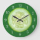 Fresh slice of pickle cucumber in a graphic design wall decor clock with a closeup of a sliced open view. This delicious kitchen wall clock will bring a splash of green and slice of food to any room kitchen to decorate in your home. Use as a home accent or home decor piece to add a little primary colour to your kitchen, living room, or kids room.