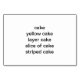 Painting of a slice of yellow layer cake, with striped red and white icing, is printed on the front, with the words, cake, yellow cake, layer cake, slice of cake, and striped cake, is printed on the back of these literacy, reading flashcards for adults. Thank you for shopping CustomFlashCards on Zazzle. I used to be a literacy tutor for adults, and these types of flash cards would have been very helpful.