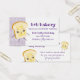Cute slices of bread with butter walking around on this bread bakery business card for your home baking business.
