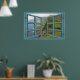PLEASE NOTE: This product is trompe l'oeil style art and is designed to have a window "appearance". No wood frame is included. This design is copyright protected and may not be copied or redistributed. For enquiries about this or other designs in this store, or if you need assistance with customisation, colour selection or special orders, please use the send message feature attached to this store and we will be happy to assist
