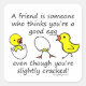 A friend is someone who thinks you're a good egg, even though you're slightly cracked! - Perfect for best friends to show how much they mean to you on their birthdays or any occasions. Funny and silly friend saying / quote. With baby chicken chicks coming out of their shells.
