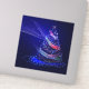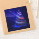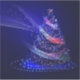 SlipperyJoe Christmas tree digital translucent red green blue ribbons glowing with festive energy concentric blue lights circles outward ethereal almost holographic presence radiant lights and sparkles artistic deep blue background gay pride gifts magical atmosphere emits beams trails of light LGBTQIA movement and flow