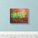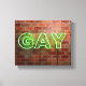 SlipperyJoe illuminated gay neon sign bright vivid electric green lights letters mounted reddish-brown brick wall gay pride gifts identity celebration LGBTQIA urban industrial look celebration love identity community live your truth visibility power vibrant glow contrasts textured backdrop sleek electric curves artistic casting lively aura