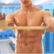 SlipperyJoe muscular man abs locker room tiled flooring gay pride gifts LGBTQIA artistic stretched gymnastic tape shirtless defined torso arms sixpack blue lockers wooden bench gym athletic facility grip strength shirtless chest 6-pack