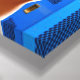 SlipperyJoe muscular man abs locker room tiled flooring gay pride gifts LGBTQIA artistic stretched gymnastic tape shirtless defined torso arms sixpack blue lockers wooden bench gym athletic facility grip strength shirtless chest 6-pack