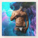 SlipperyJoe muscular man underwear bulge vibrant hues blue teal purple cloud-like abstraction gay pride gifts LGBTQIA artistic dreamlike abstract energy psychedelic surrealism cosmic effect surreal and imaginative background hand rests over chest