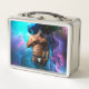 This is a standard metal lunchbox that appears to work just fine. We designed this box ourselves with an uploaded photo and custom text on the front and back. It looks absolutely beautiful except the front of the lunchbox is not centered like it shows in the photo. The print borders don't align with the inset flat part of the box where the preview photo online showed it perfectly centered in there. The back looks nice and centered though.