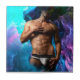SlipperyJoe muscular man underwear bulge vibrant hues blue teal purple cloud-like abstraction gay pride gifts LGBTQIA artistic dreamlike abstract energy psychedelic surrealism cosmic effect surreal and imaginative background hand rests over chest