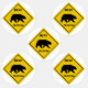 SlipperyJoe's bear crossing sign bear silhouette walking yellow background symbolising strength nature cautionary warning whimsy colour palette black yellow gold wilderness adventure artistic gay pride gifts LGBTQIA