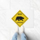 SlipperyJoe's bear crossing sign bear silhouette walking yellow background symbolising strength nature cautionary warning whimsy colour palette black yellow gold wilderness adventure artistic gay pride gifts LGBTQIA