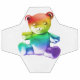 SlipperyJoe's brushed metal teddy bear smooth gradient rainbow effect round head ears circular eyes reds oranges greens blues purples arms and legs stretched outward artistic cheerful little smile LGBTQIA gay pride gifts overall vibe whimsical modern striking piece digital pop art radiates playful energy