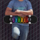 SlipperyJoe's group people holding hands forming line silhouette striking rainbow shades colours celebrate love arms raised high unity joy artistic digital illustration gay pride gifts LGBTQIA joyful vibes stand tall stand together uplift one another
