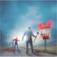 SlipperyJoe's happy Halloween glowing eyes zombies outbreak quarantine sign male survivor figure stands foreground infection gas mask aeroplanes ground splattered bloodstains mysterious figures post-apocalyptic zombie-infected world armed with sledgehammer for combat artistic dark stormy sky desolate landscape LGBTQIA gay pride gifts