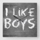 SlipperyJoe's I Like Boys dirty chalkboard dark textured background bold distressed white lettering stark gritty aesthetic dust residue dull greyish haze distracting smudges erasing leaving streaks LGBTQIA gay pride gifts artistic raw expressive rebellious feel cheeky straightforward honesty