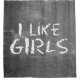 SlipperyJoe's I Like Girls dirty chalkboard dark textured background bold distressed white lettering stark gritty aesthetic dust residue dull greyish haze distracting smudges erasing leaving streaks LGBTQIA gay pride gifts artistic raw expressive rebellious feel cheeky straightforward honesty