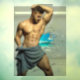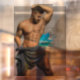SlipperyJoe's Man towel broken white brick wall bare chest torso muscles cracked floor broken brick wall tropical beach beard dreamy artistic gay pride gifts LGBTQIA grey brown white blue shades unique visual effect