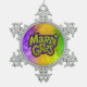 SlipperyJoe's Mardi Gras festival purple green yel Snowflake Pewter Christmas Ornament