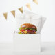 SlipperyJoe's mouthwatering cheeseburger crispy bacon strips layered savoriness onions pickles thinly sliced tomato slice leafy lettuce melted cheddar juicy beef patty juicy flame-grilled smothered patty top bun golden brown sesame-seeds gay pride gifts LGBTQIA artistic classic Americana comfort food green red yellow vibrant colors