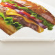 SlipperyJoe's mouthwatering cheeseburger crispy bacon strips layered savoriness onions pickles thinly sliced tomato slice leafy lettuce melted cheddar juicy beef patty juicy flame-grilled smothered patty top bun golden brown sesame-seeds gay pride gifts LGBTQIA artistic classic Americana comfort food green red yellow vibrant colours