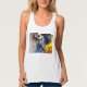 I had purchased the flowy tank for another graphic so I knew it would fit. Nice light fabric, perfect for summer, doesn't cling. The white can be a little shear, you can definitely see your bra through it so if that bothers you, go for a darker color. I have worn this out during the day, and at the gym. The colors are washed out. The blue is more of a pale light blue as compared with the graphic displayed on the website. I would have liked the colors a little more saturated but still nice.