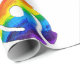 SlipperyJoe's plastic 45 RPM record adapter vibrant rainbow tie-dye design spindle insert contemporary pop-art vibe red orange yellow green blue purple retro meets modern 7-inch vinyl artistic gay pride gifts LGBTQIA merging nostalgia with modern identity standard turntables