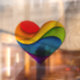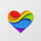 SlipperyJoe's pride heart curves shape 3-D three-dimensional look rainbow celebrates love artistic visually appealing colours gay pride gifts LGBTQIA red orange yellow green blue purple smooth wave-like appearance vibrant dynamic movement graphic design